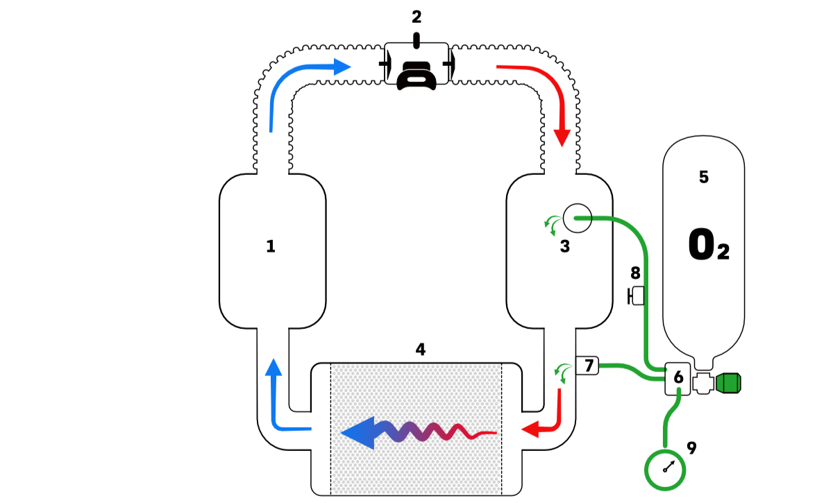 Et rebreathersystem kan umiddelbart virke kompliceret, men princippet bygger på ret enkel kemi og mekanik. Når en dykker ånder ud gennem en rebreather, ledes udåndingsluften ind i et lukket kredsløb. Her passerer den igennem en beholder, hvor et kemisk absorptionsmiddel – typisk en substans som natrium- eller calciumhydroxid, kendt som “soda lime” – fjerner kuldioxid fra luften. Derefter tilsættes ilt for at opretholde den rette koncentration, hvorefter luften atter inhaleres. På den måde genbruges gasserne, og spildet minimeres.